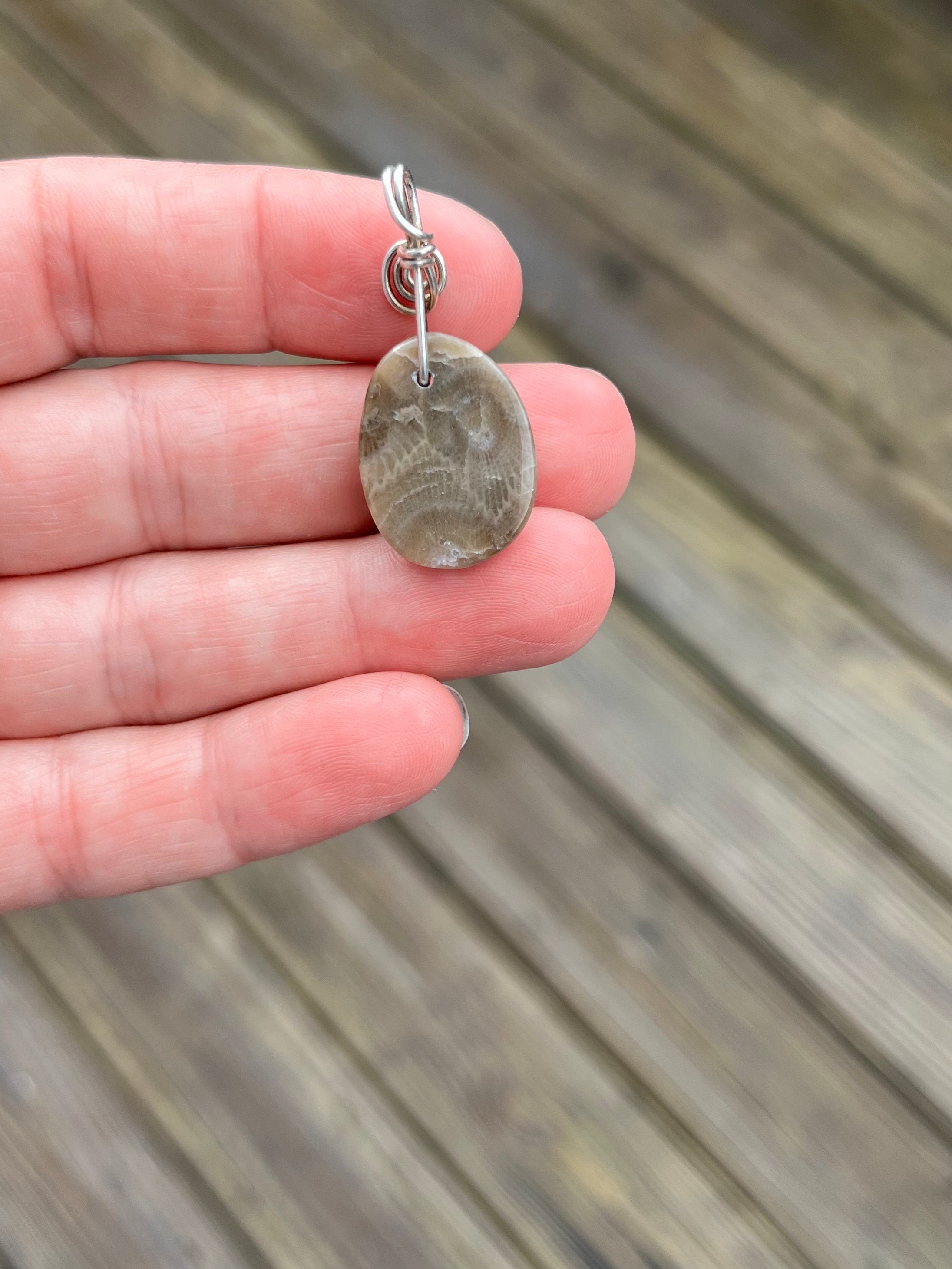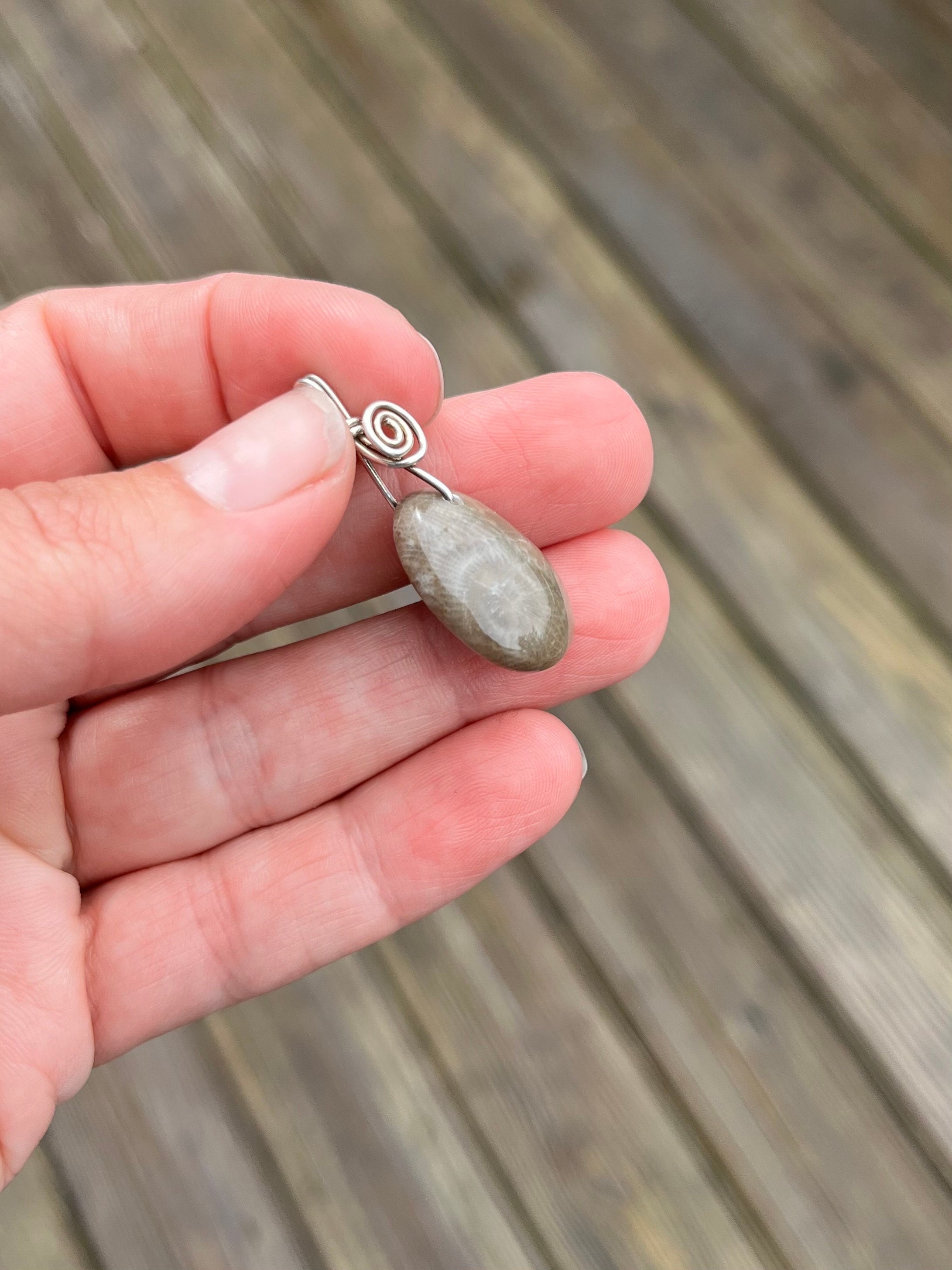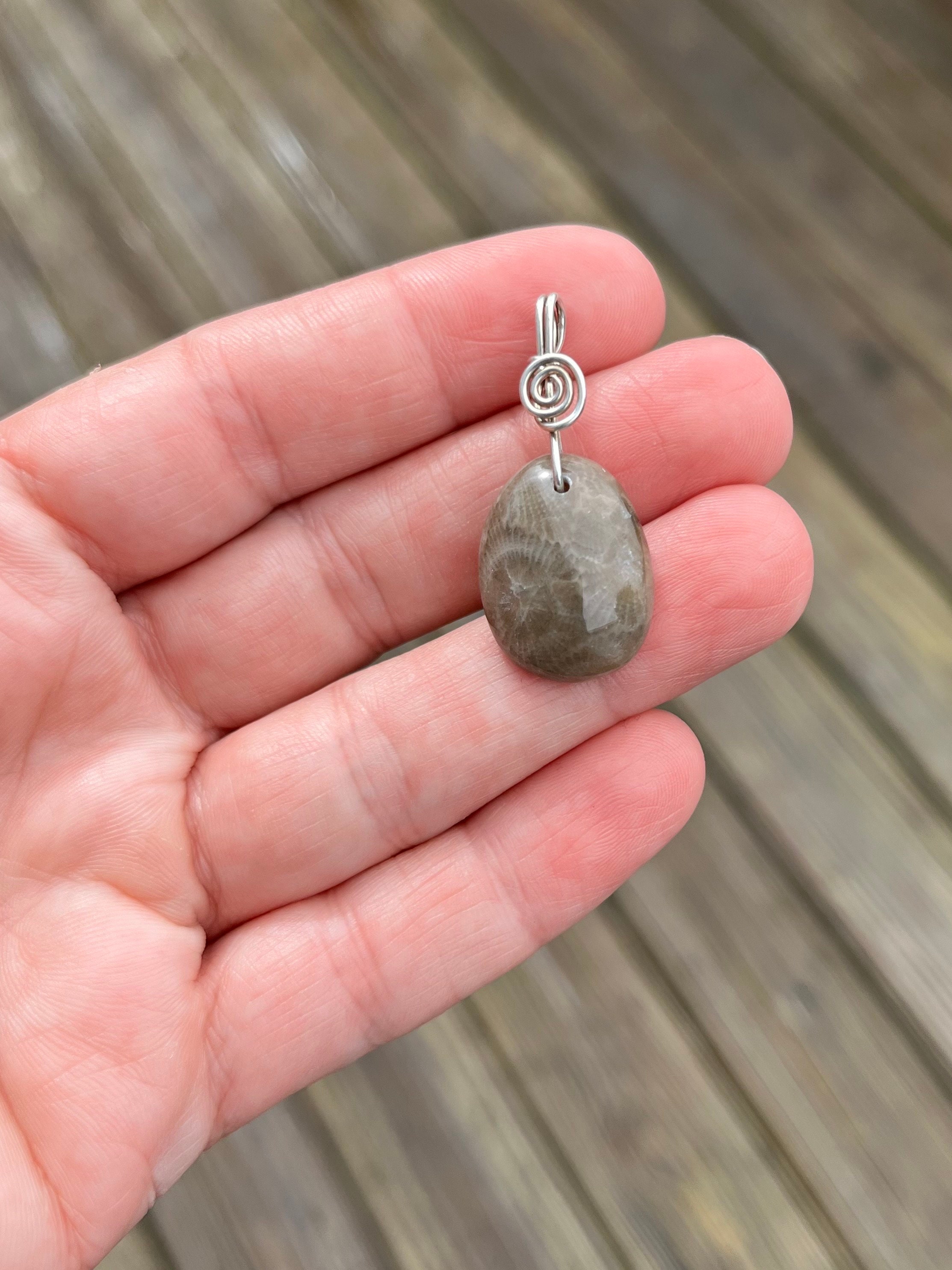 This beautiful genuine Petoskey Stone Pendant is gorgeous, add a simple Sterling Silver wire wrap and it’s stunning!!