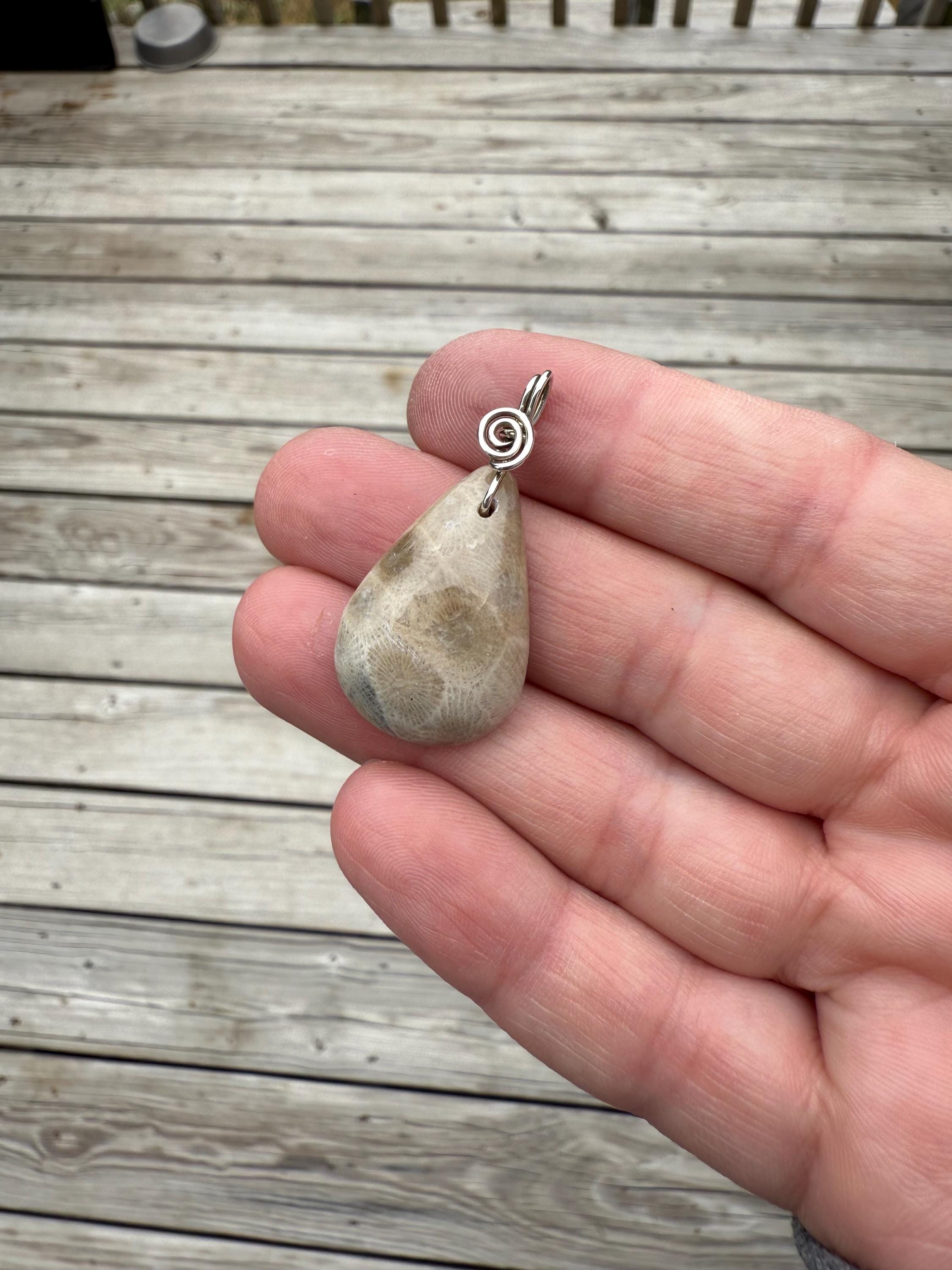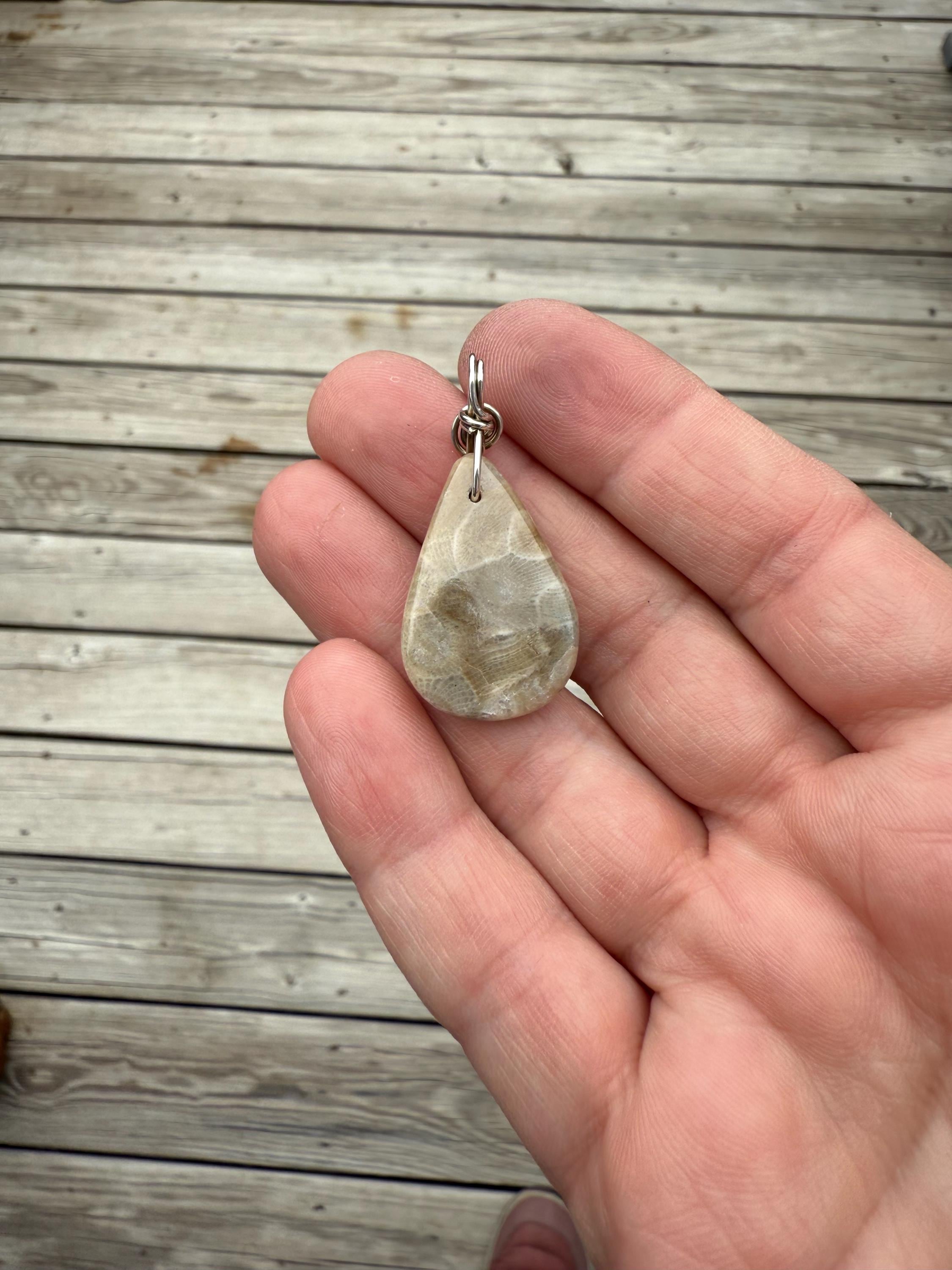 This gorgeous Petoskey Stone Pendant is a true Michigan treasure! The natural beauty of the stone speaks for itself — and when paired with a simple sterling silver wire wrap, it’s absolutely stunning. ✨