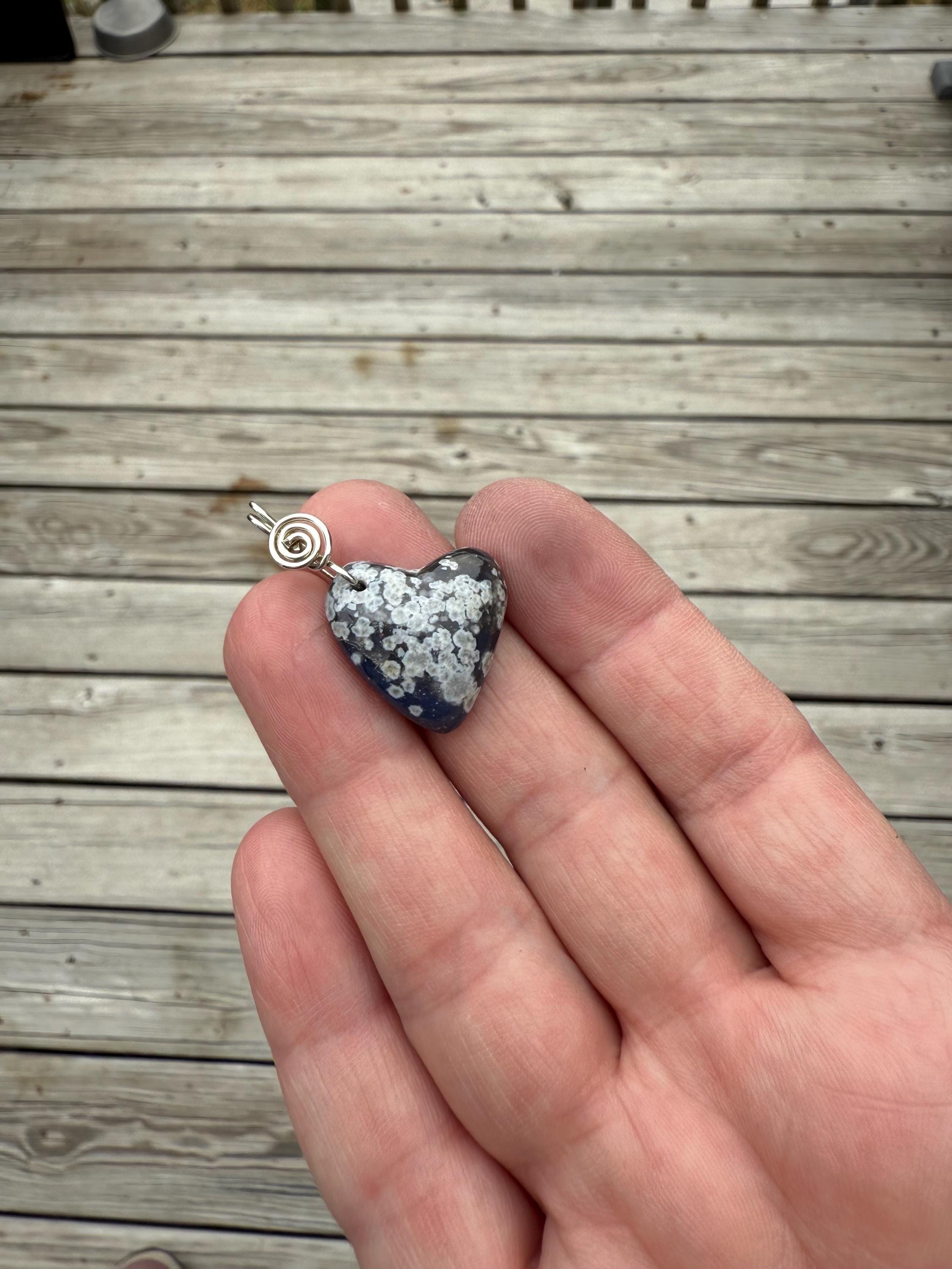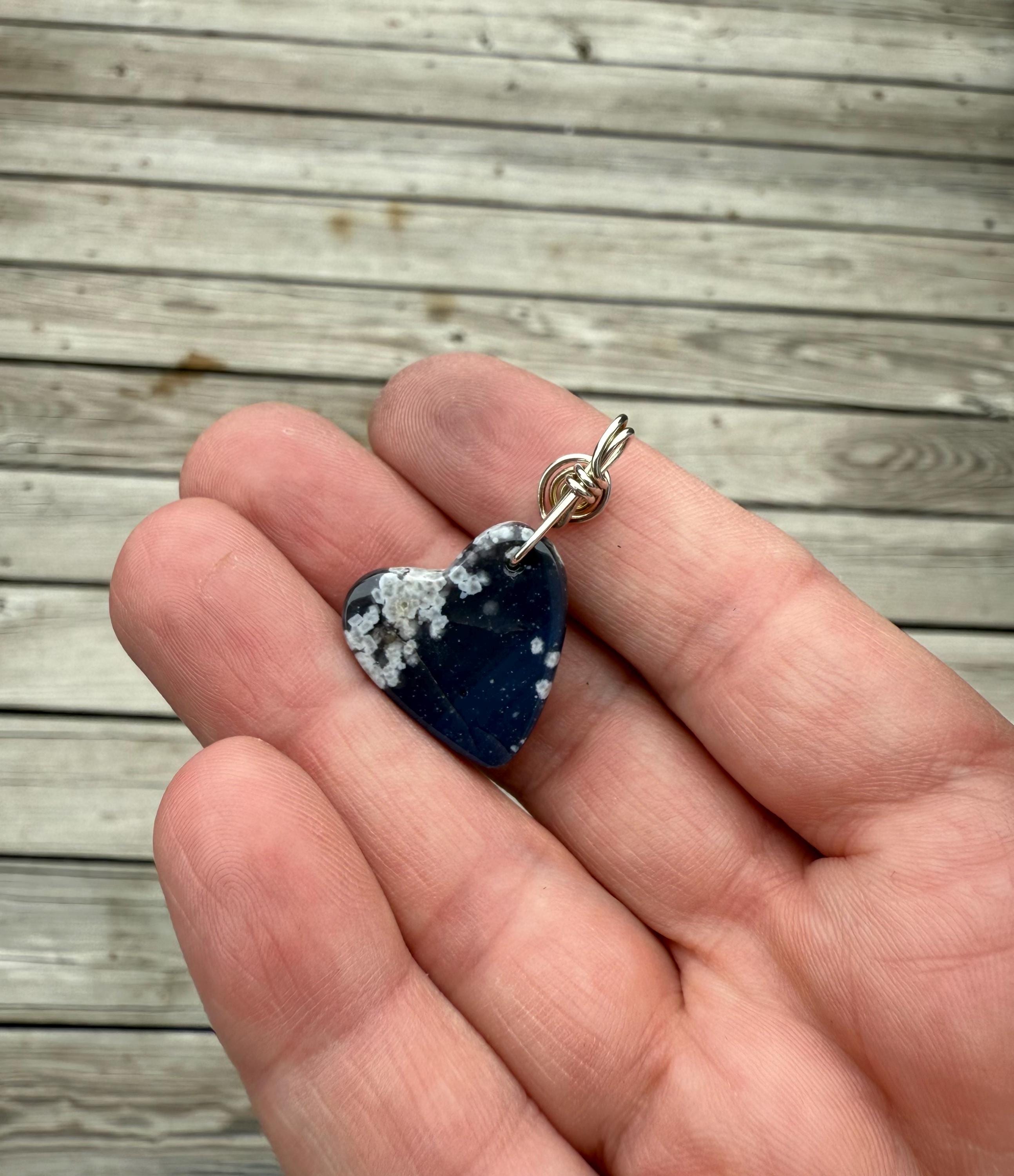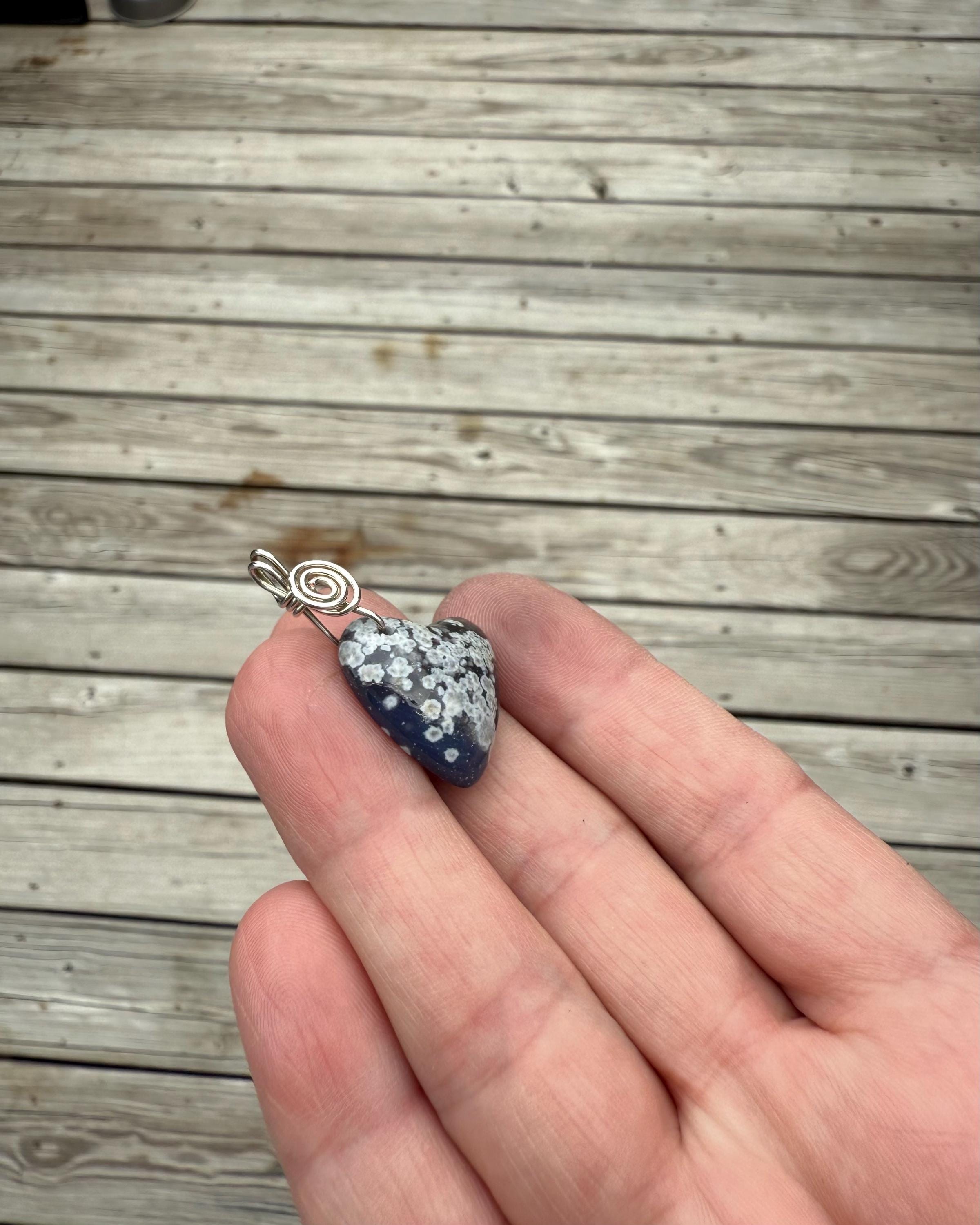 This beautiful Leland Blue Heart Pendant is a true piece of Michigan history and artistry! Hand-shaped freehand (no templates or molds used!), each heart is completely unique — no two will ever be exactly alike. The simple sterling silver wire wrap highlights the stone’s natural color and adds just the right touch of elegance. ✨