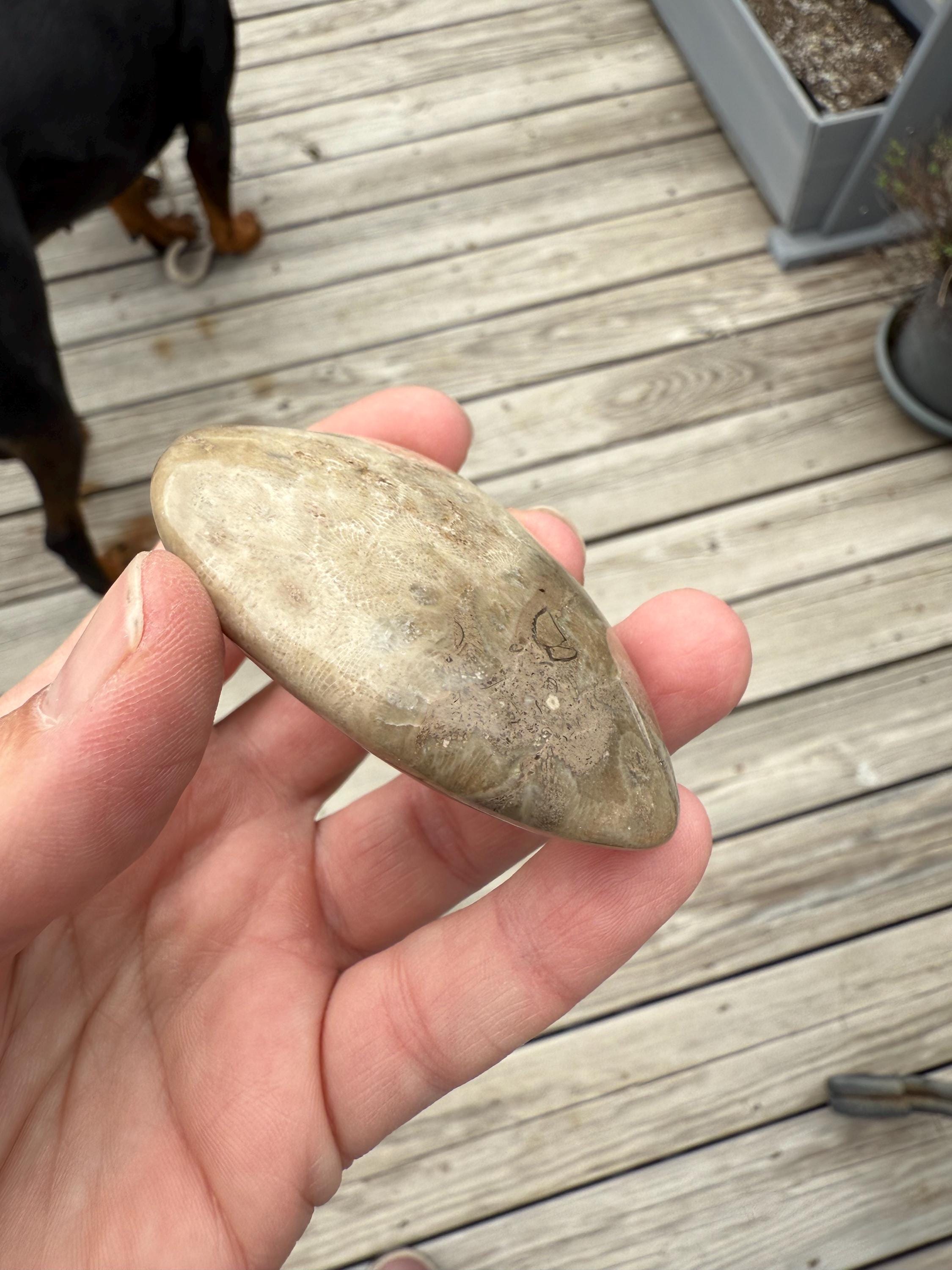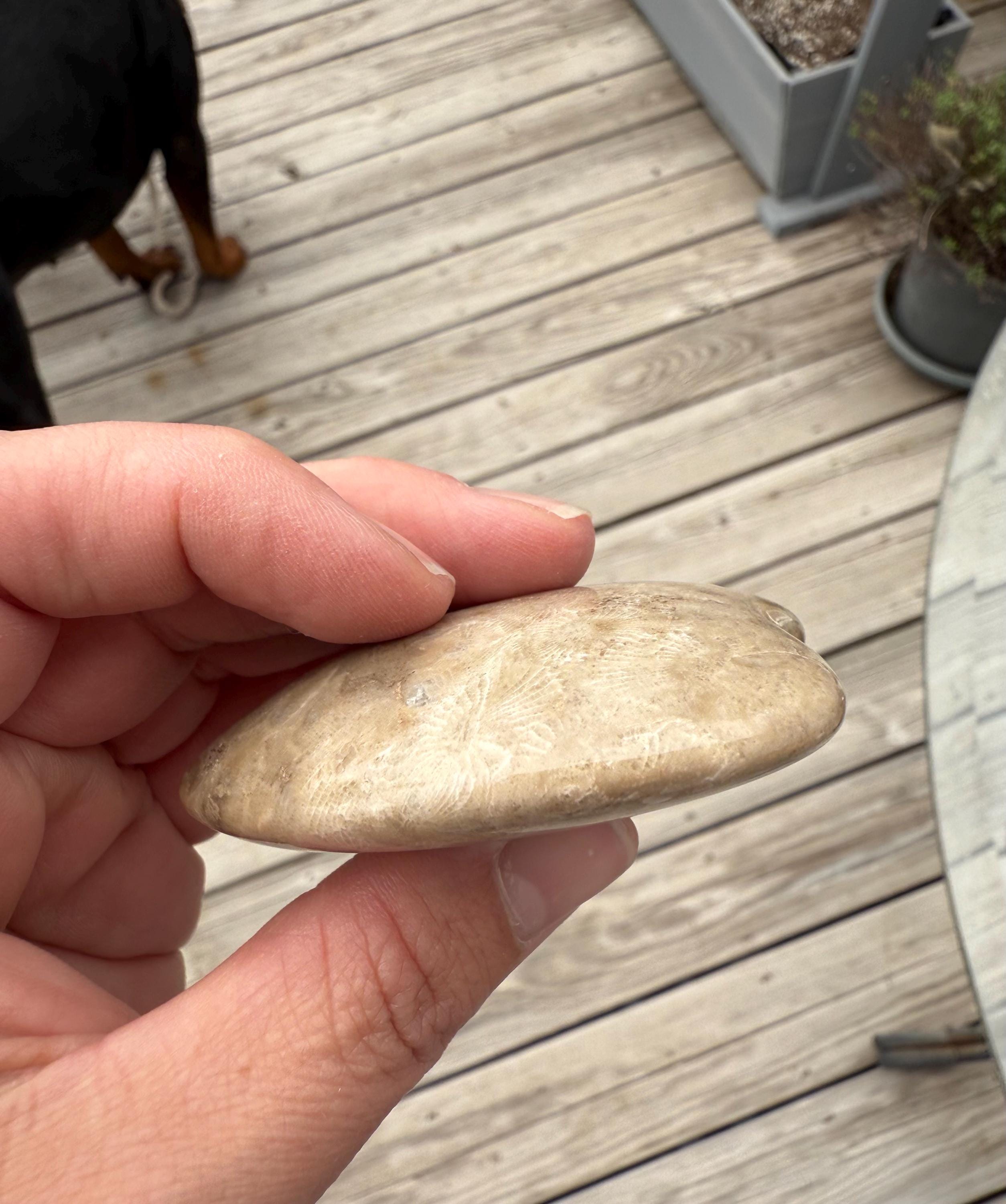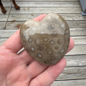 This listing is for the exact Petoskey Stone Palm Heart shown in the photos.
