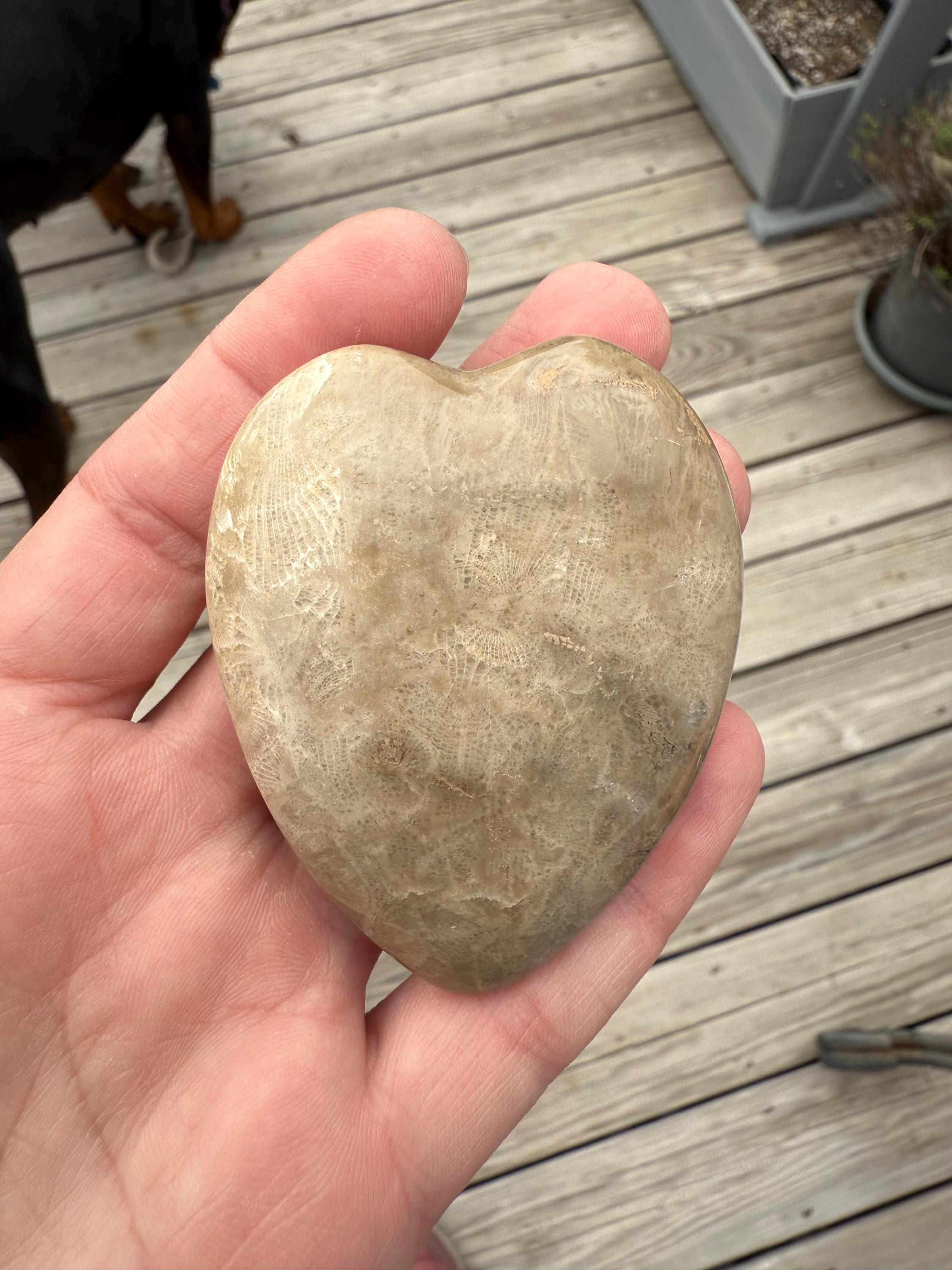 Looking for a gift that’s as unique as it is beautiful? This hand-shaped Petoskey Stone Palm Heart is a true Michigan treasure — no templates or molds used, just natural artistry shaped entirely by hand!