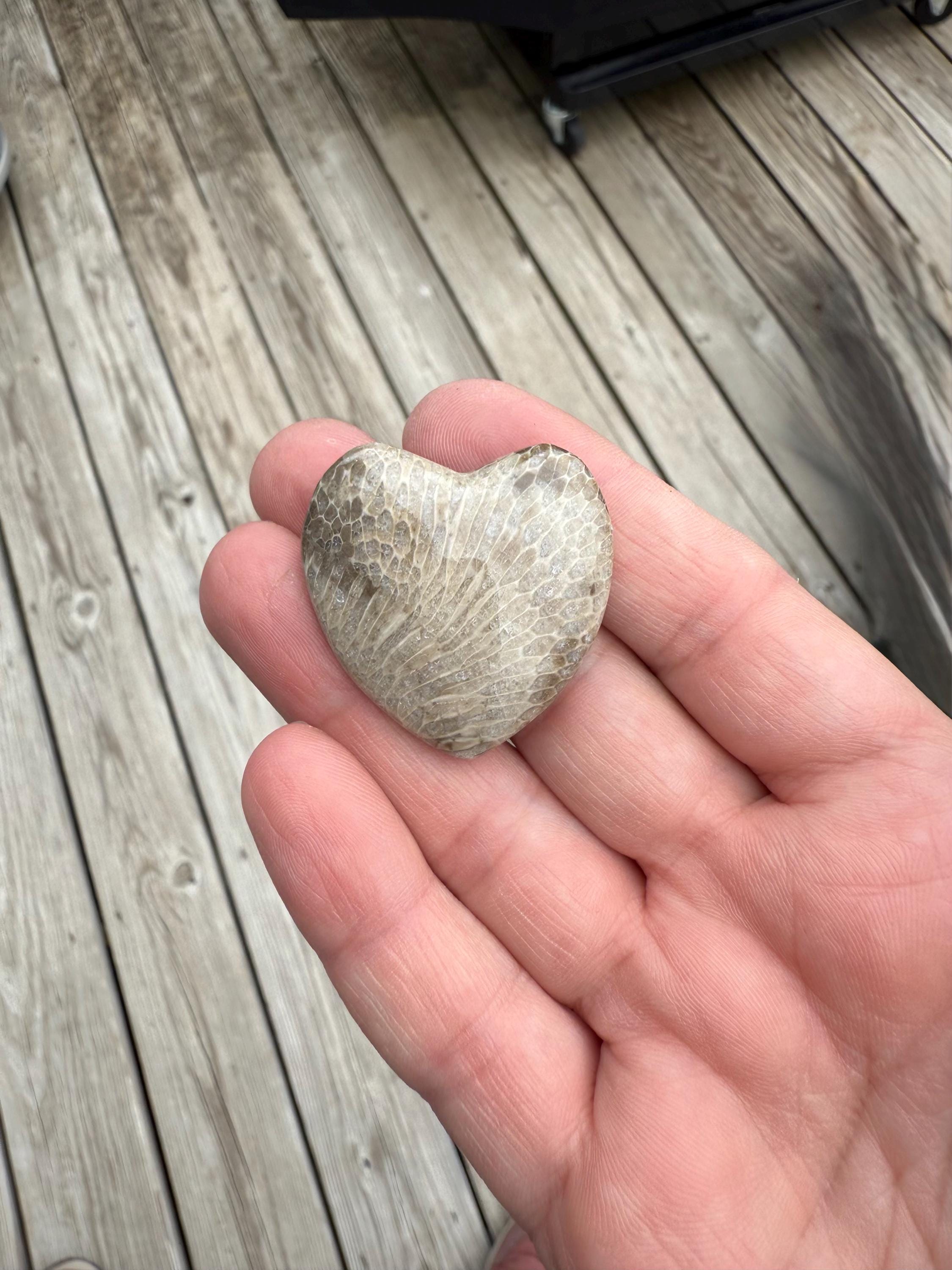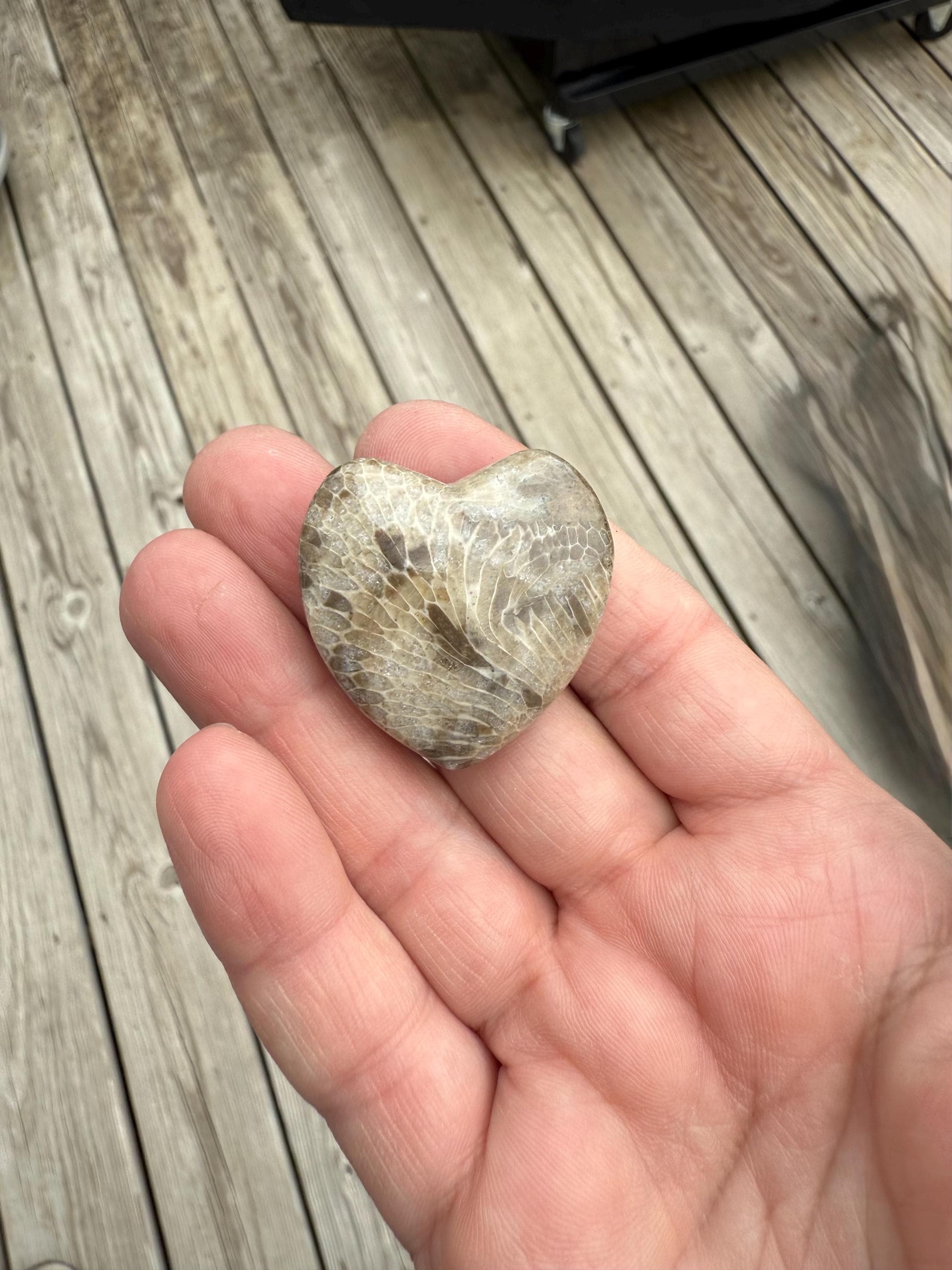 Each heart is made from genuine Favosite (Honeycomb Coral) — an ancient fossil coral found along the Great Lakes. Its natural honeycomb pattern makes every piece completely unique, with intricate details you’ll never find twice.