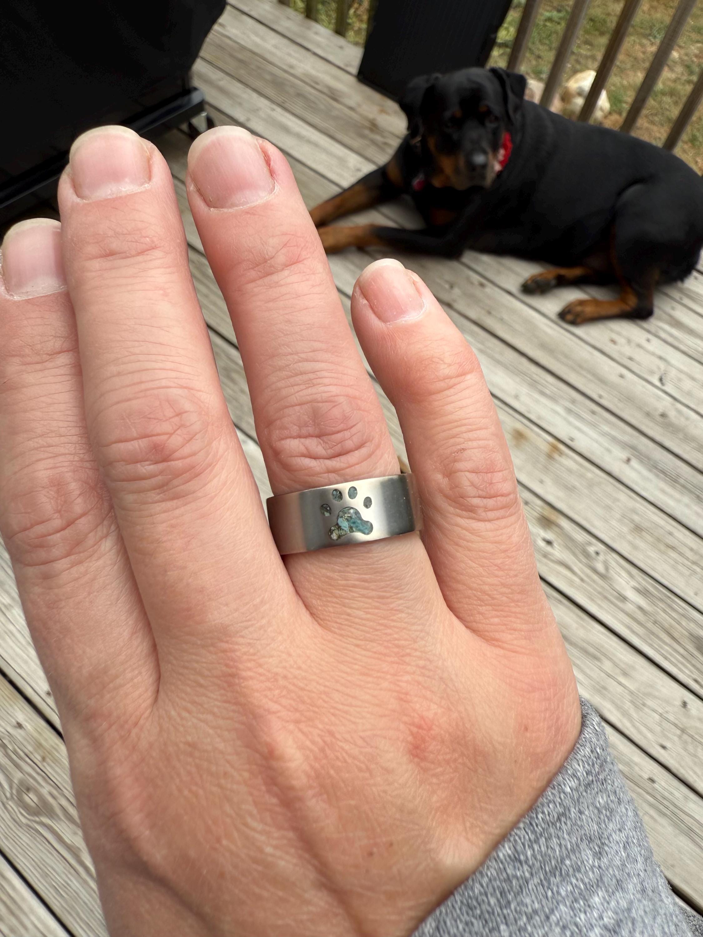 Each ring is carefully handcrafted to order, ensuring no two are ever alike. The titanium’s polished finish perfectly complements the natural stone’s brilliance, creating a piece that’s modern, bold, and unmistakably you.