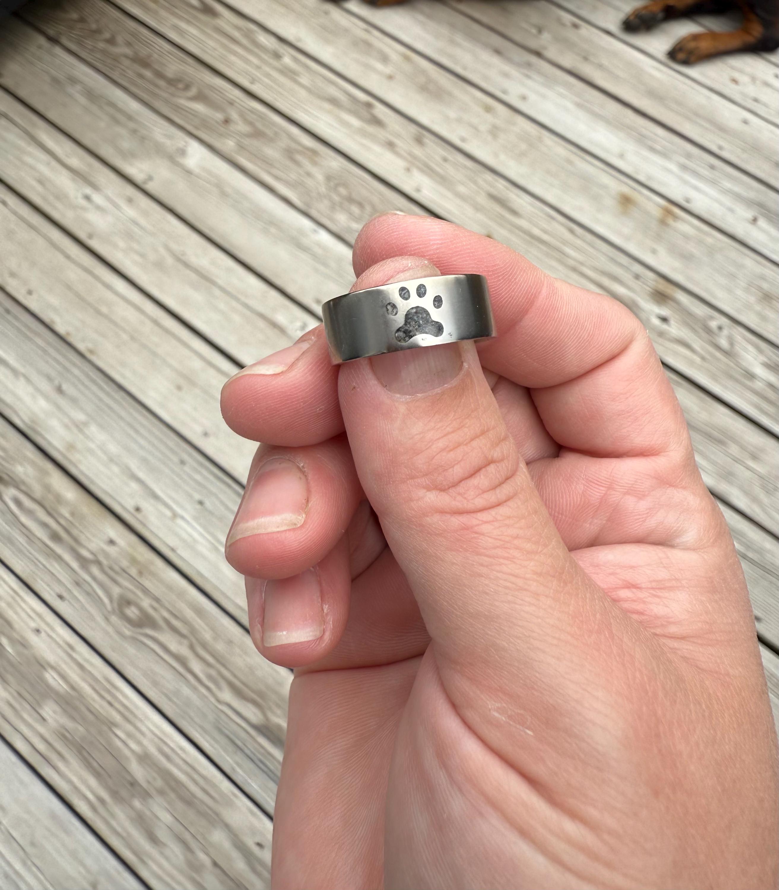 PRE ORDER - Titanium Fluorescent Sodalite Paw Print Ring