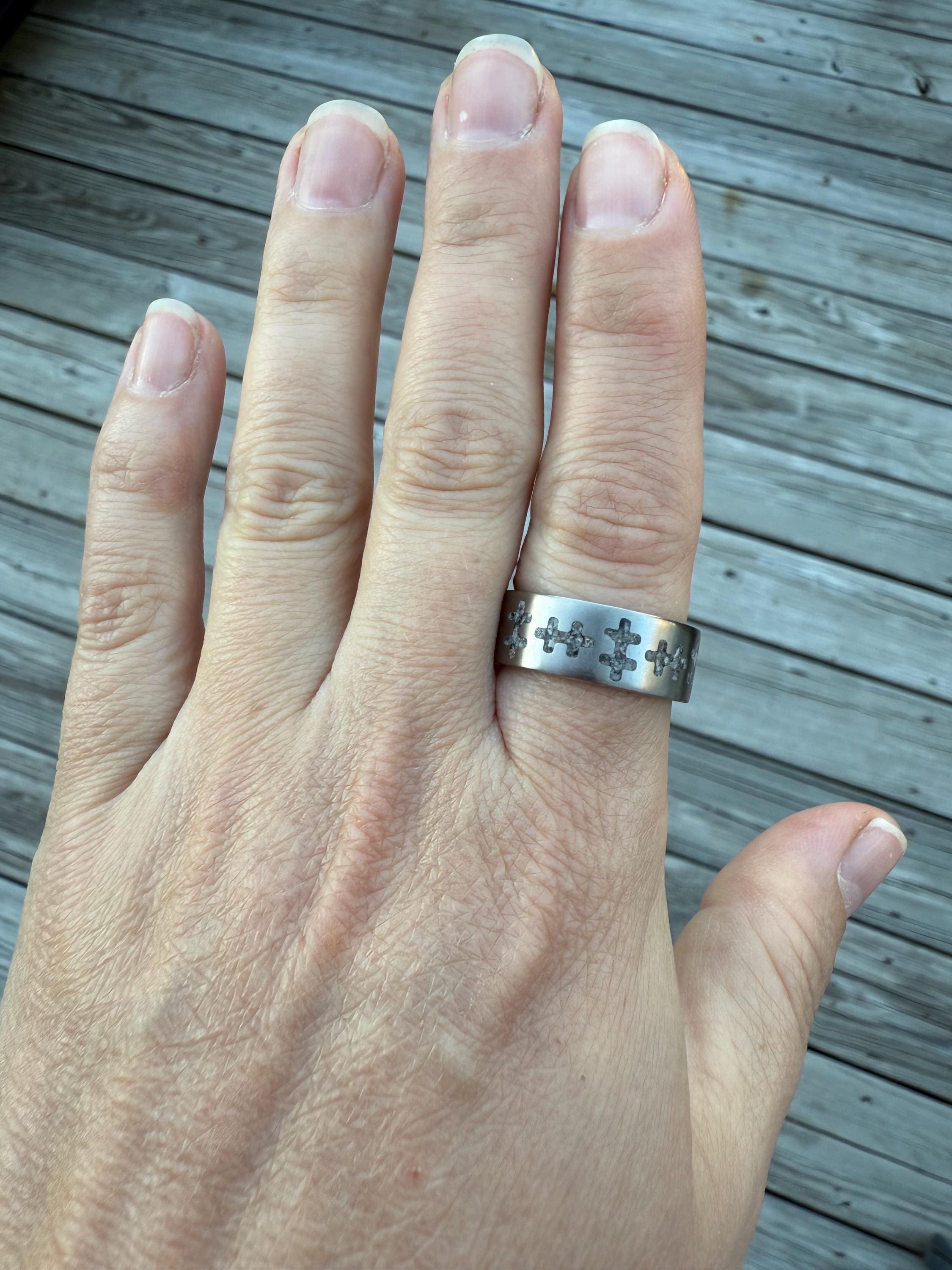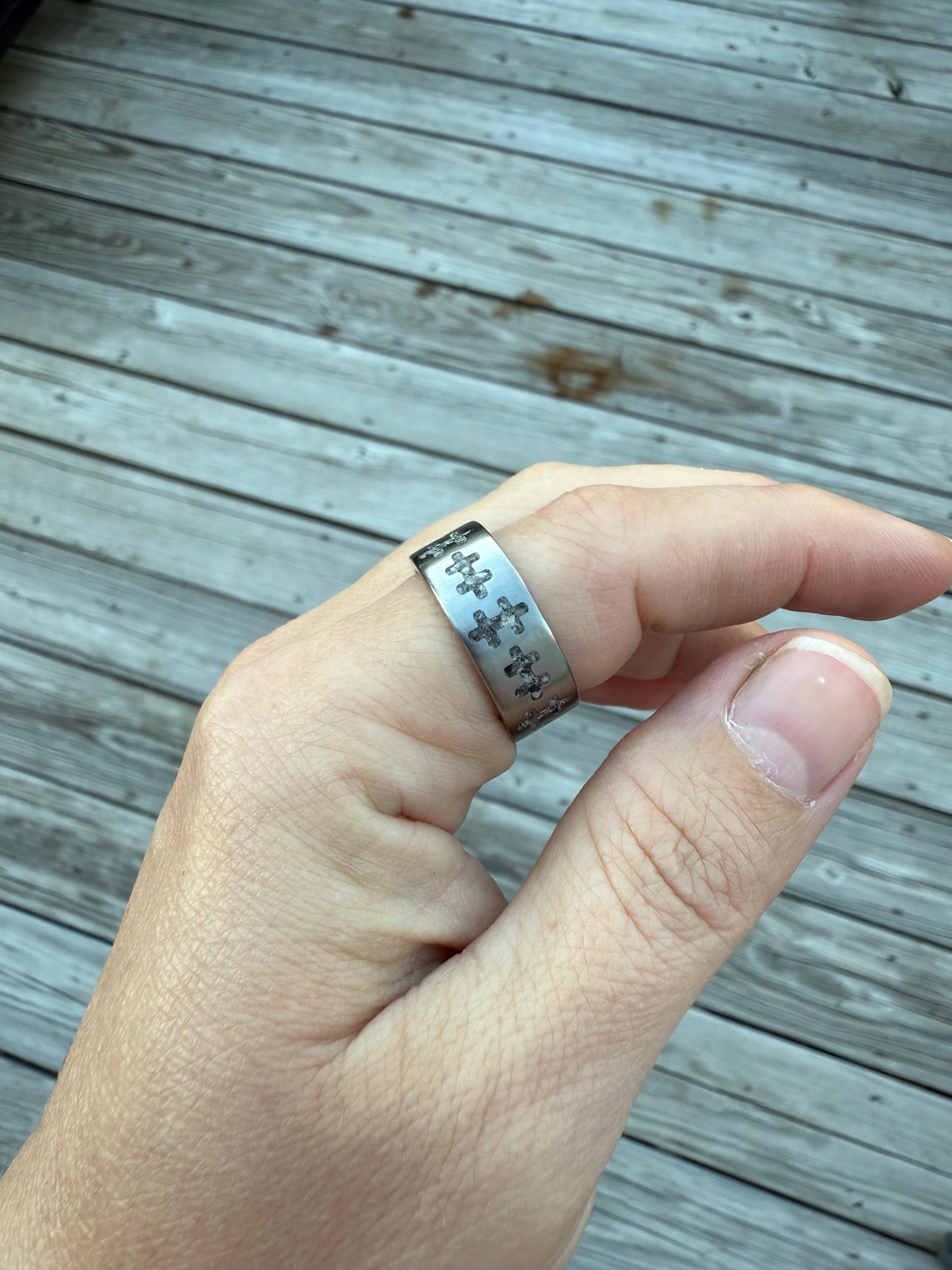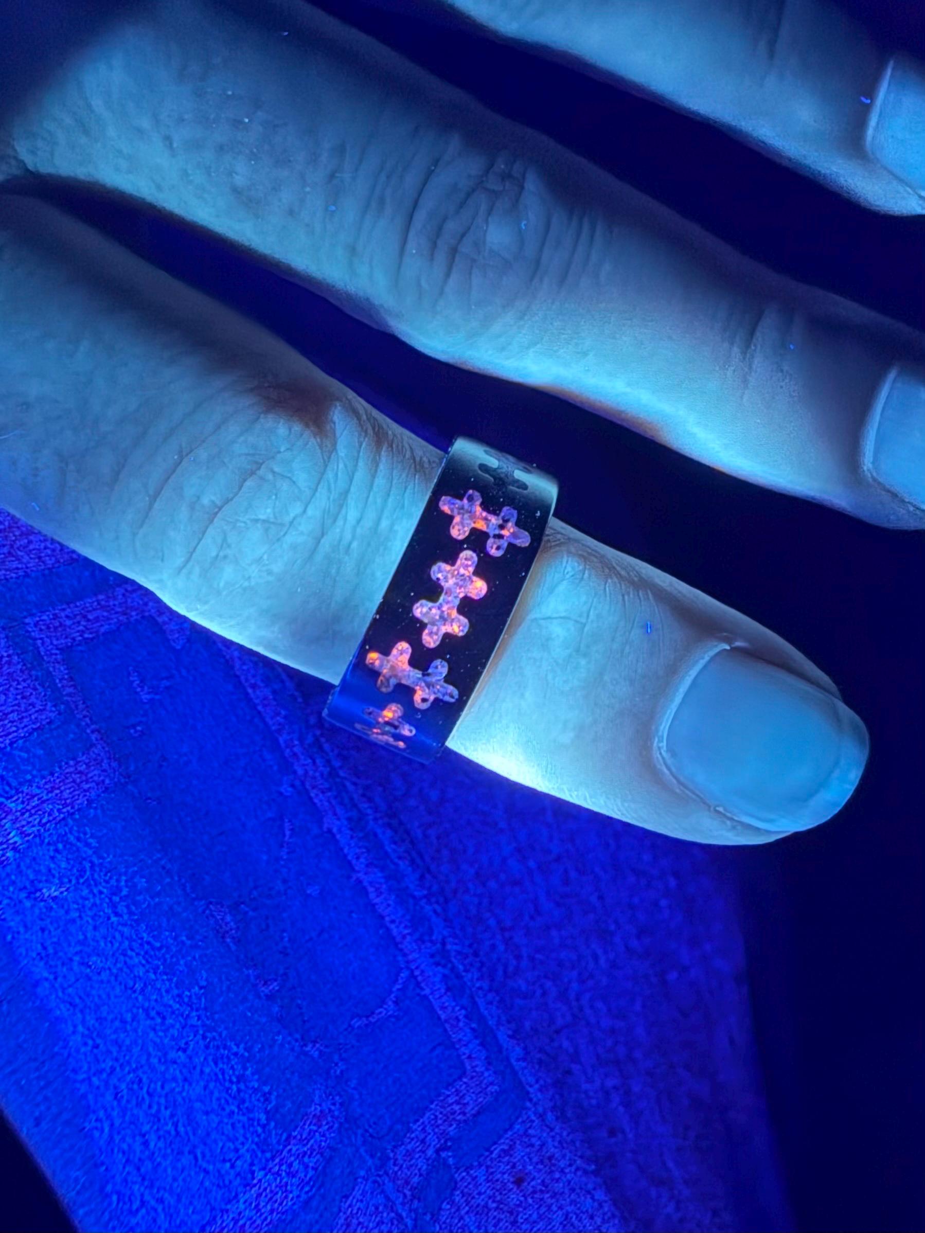 Introducing a ring that’s truly out of this world! Our Titanium Fluorescent Sodalite Ring combines the sleek strength of titanium with the mesmerizing glow of fluorescent sodalite. By day, it’s striking and elegant — by night (or under UV light), it comes alive with a vibrant glow that demands attention.