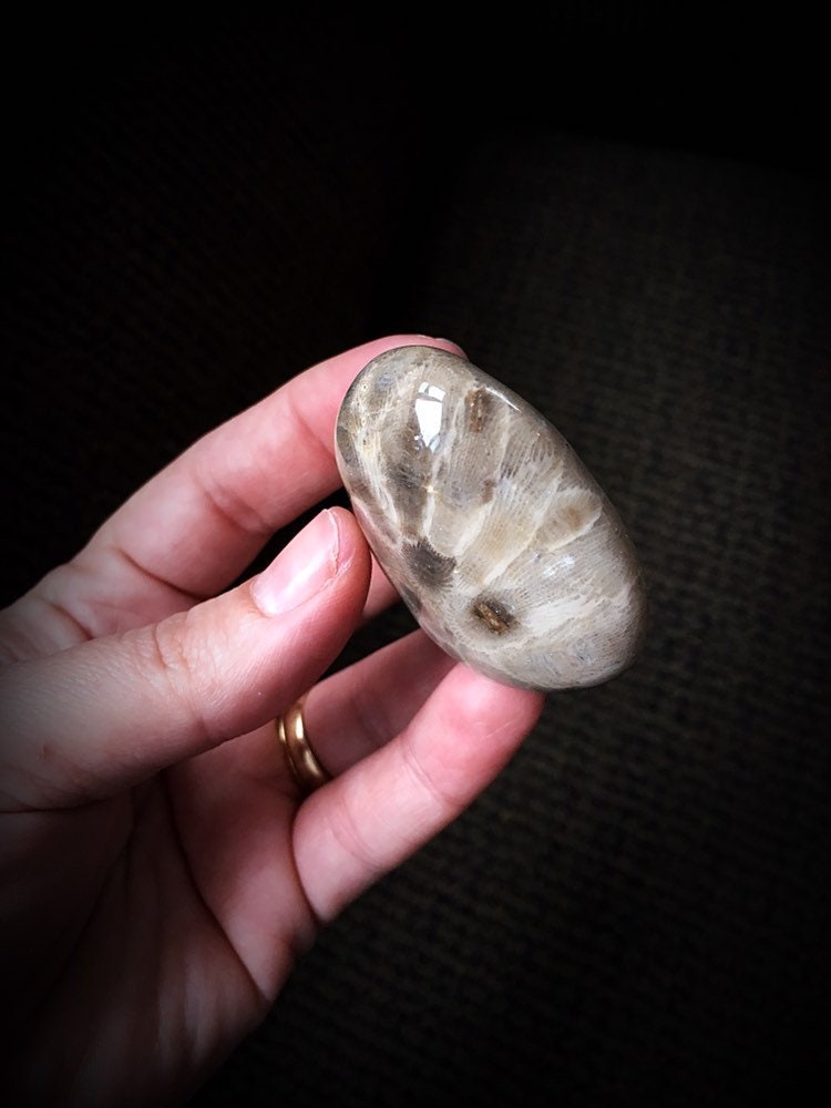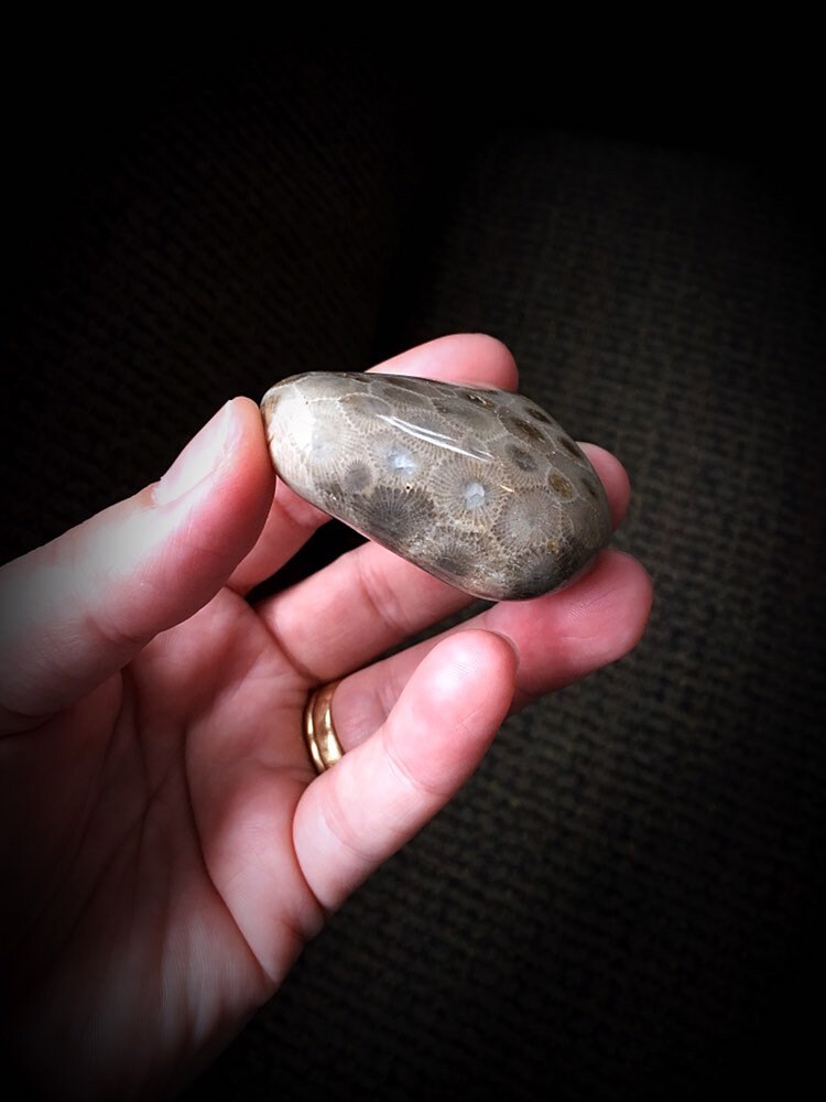 This piece would look amazing sitting anywhere in your home, office, or anywhere in between! It's a stand alone piece, perfect for that rockhound in your life! This Petoskey Stone is about 2" at it's widest point, and weights about 2.4oz!! If you're looking for a beautiful Petoskey Stone, here it is!!!