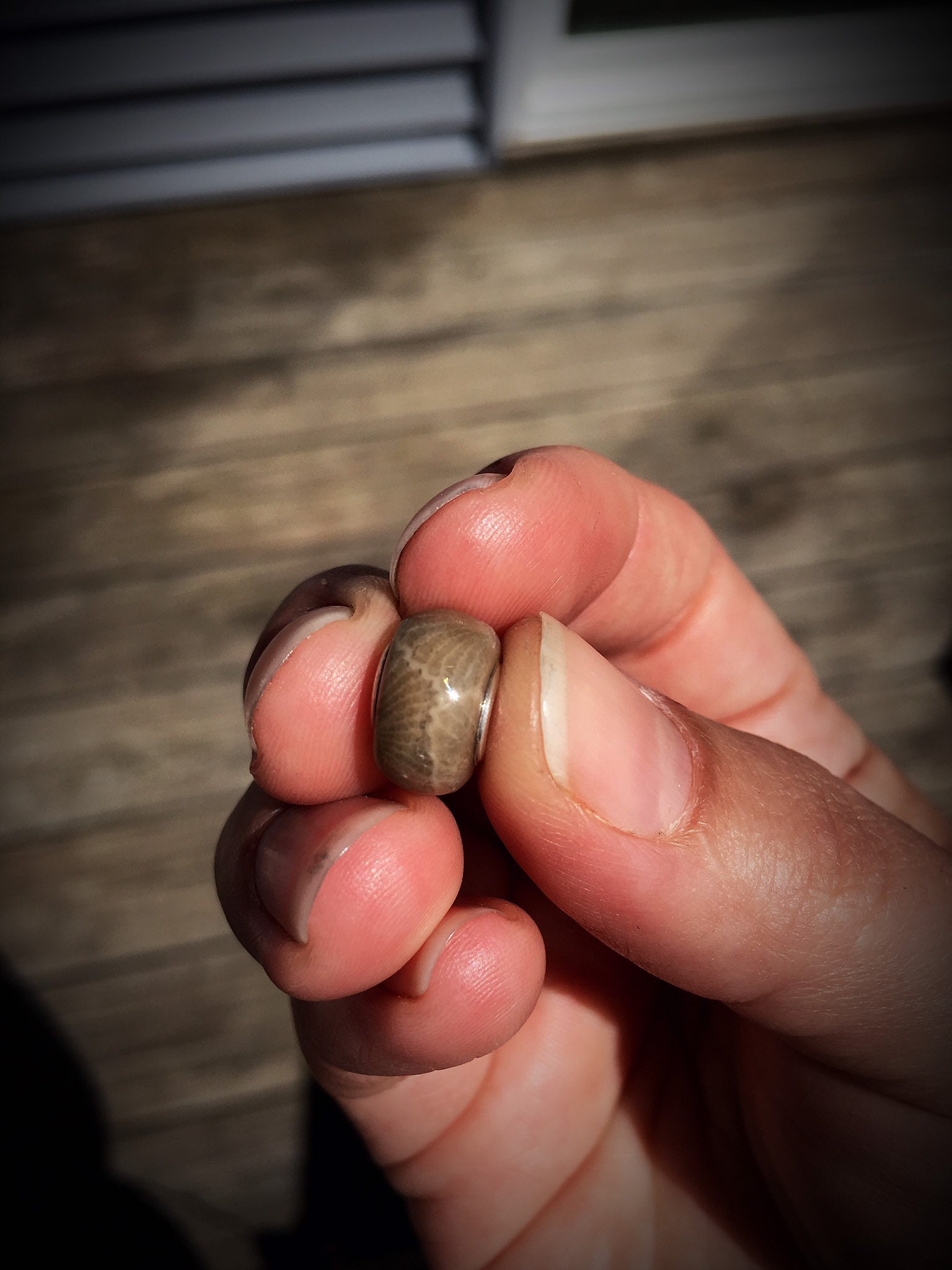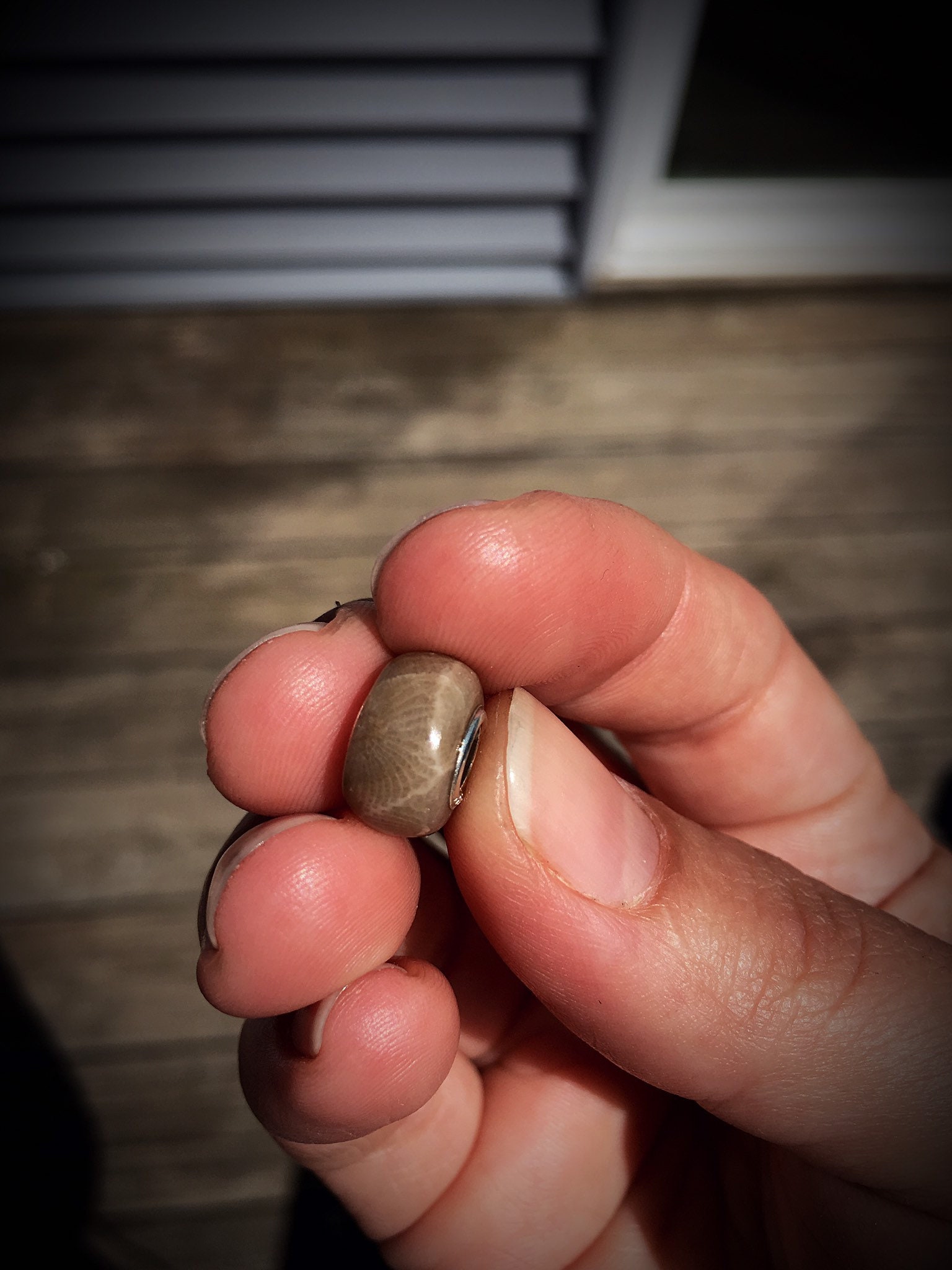 Check out this bead! This beautiful genuine Petoskey Stone Charm Bead is a stand alone piece! If you've never seen a polished Petoskey stone, they are nothing like you've ever seen! This bead fits most, if not all charm bracelets!!