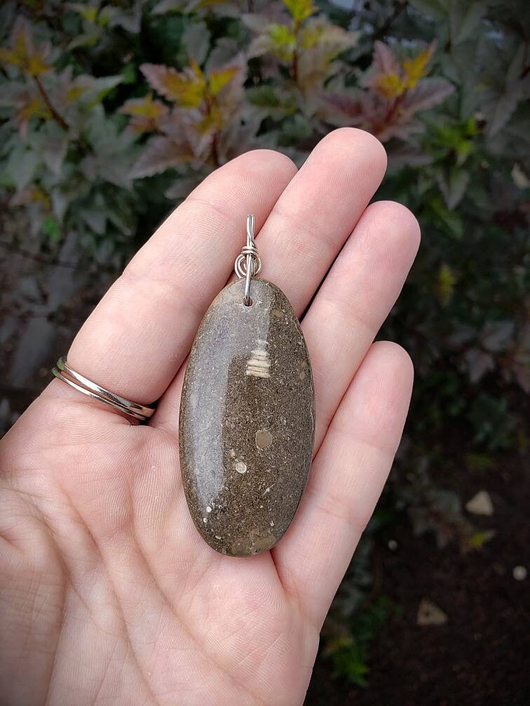 Sterling Silver Wire Wrapped Crinoid Fossil Pendant!!