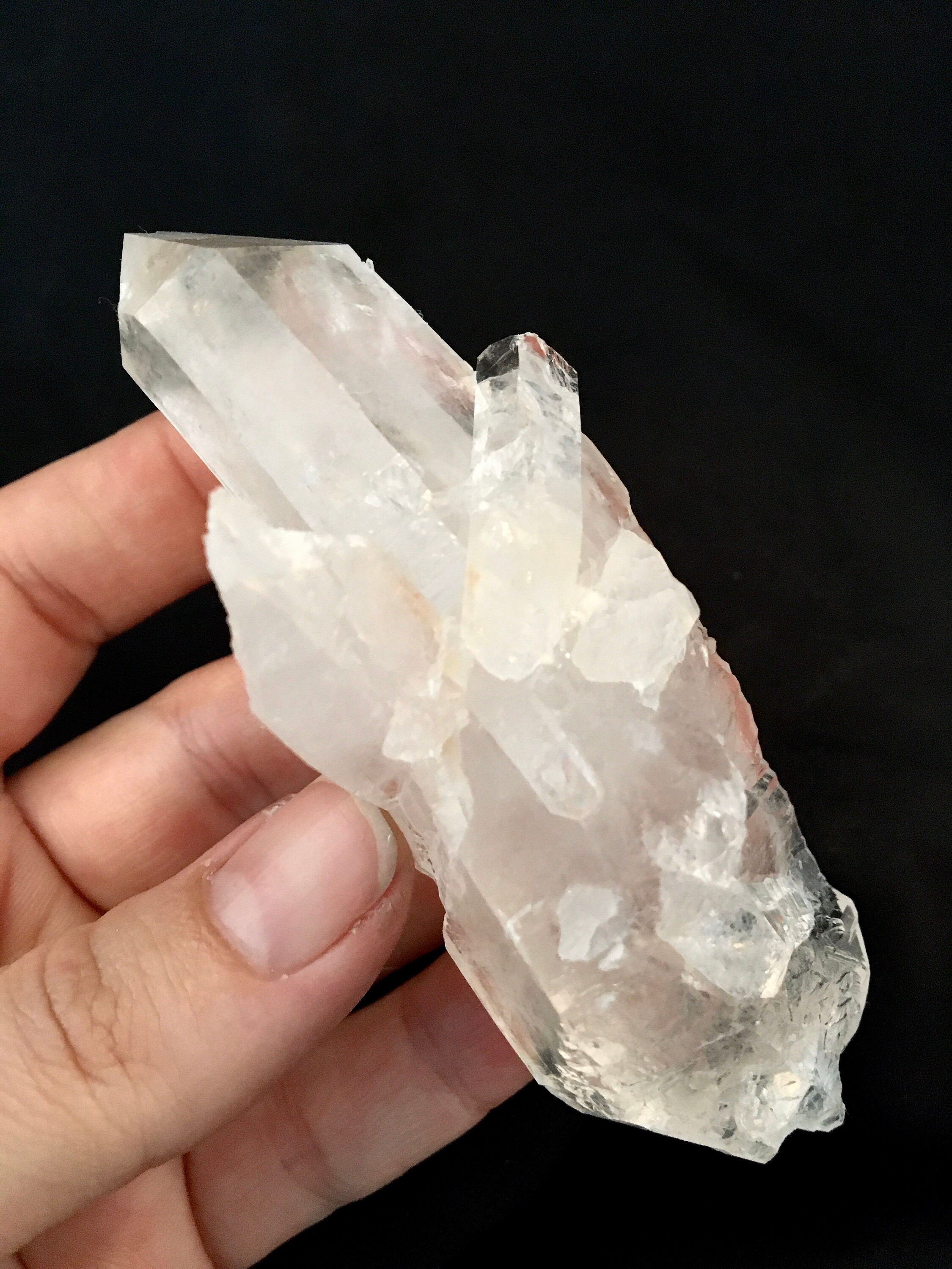 This listing is for the pictured Arkansas Quartz Crystal Cluster. It weighs at about 3.8oz, and measures about 1.5”W x 3.5”T.
